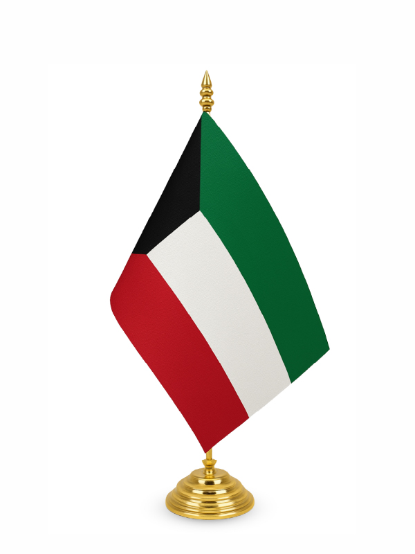 Sophisticated VIP Table Flagpoles with the Kuwait National Flag, designed to enhance offices, boardrooms, and official events.